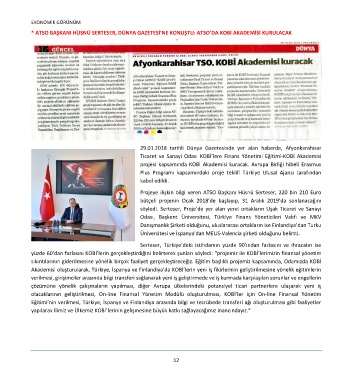 * ATSO BAŞKANI HÜSNÜ SERTESER, DÜNYA GAZETESİ’NE KONUŞTU: ATSO’DA KOBİ AKADEMİSİ KURULACAK