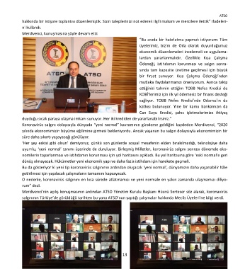 Merdivenci’nin açılış konuşmasının ardından ATSO Yönetim Kurulu Başkanı Hüsnü Serteser söz alarak, koronavirüs